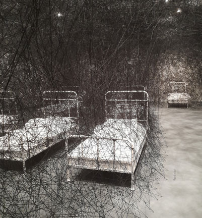 A very interesting if weird exhibition by a Japanese and a Chinese artist. Chiharu works with installation and millions of threads. Yin works with discarded clothes and makes whole cities in suitcases! A wonderful show.