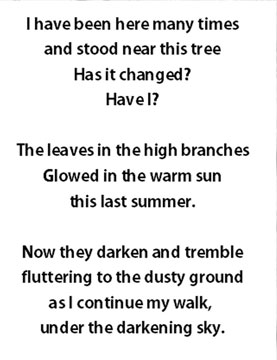 The Darkening Sky: bookwork: Accordion fold incorporating 6 autumn related poems; three of which I wrote including the poem that inspired the book: